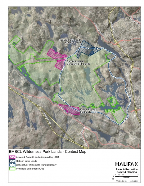 The only land recognized as being actually added to what will make up the regional park is the Hobson Lake block, purchased by Halifax Regional Municipality (HRM) in January, 2018; the Barrett lands purchased in 2019; and the Armco property, also added in 2019. No overall park planning is known to be underway and no improvements such as trail construction or improvements have been made to any of these properties. HRM’s description and status of the proposed, regional park can be found here.