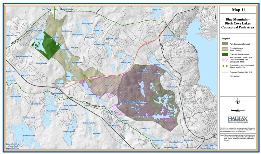 The Our HRM Alliance proposed a green network for HRM that would be the envy of the country – including protection of important lynchpin natural areas like Blue Mountain-Birch Cove Lakes, the Purcell’s Cove Backlands and the Sandy Lake area.