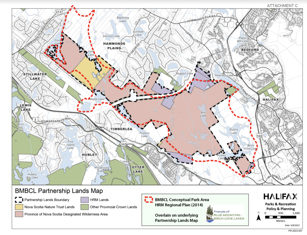 Meanwhile the Halifax Green Network Plan was nearing completion and to no one’s surprise highlighted the Blue Mountain-Birch Cove Lakes as an indispensable area of high ecological value.